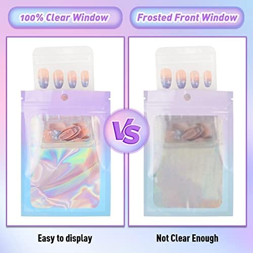 Funfery 100 Pack Gradient Holographic Bags,Resealable Mylar Bags with Zipper,Clear Window Packaging Pouch,Plastic Smell Proof Bags for Food Storage,Sample Jewelry Baggies(4×6in,Purple Blue)