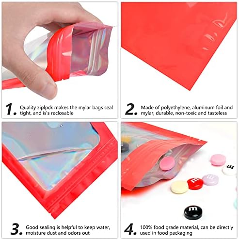 【SIZE & QUANTITY】- Measuring 4 inches by 6 inches, 100 pieces of resealable holographic bags in the package, enough for your daily use.Please note that the actual color may appear in a slight difference under different light,angle and screen.