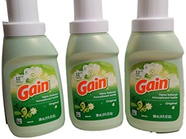 Gain Liquid Fabric Softener Original Fresh 10 Oz (Pack of 3) Gain Original Fabric Softener keeps freshness in your clothes even after two weeks. The Gain Original Fresh Scent Fabric Softener adds liquid softness and a gentle spring scent to your laundry. Its special formula takes the wrinkles, stiffness and static out of your clothes.