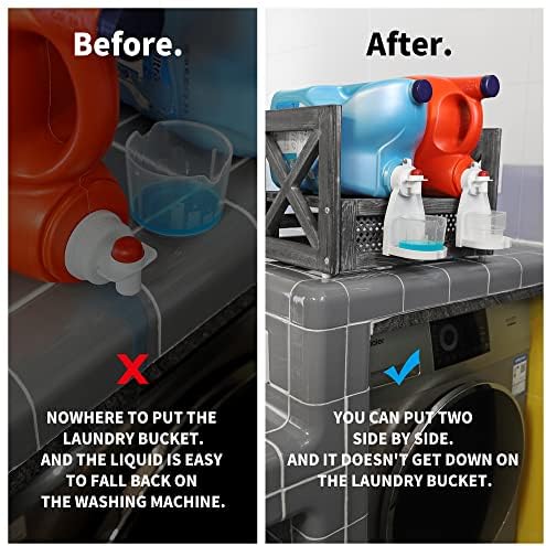 Upgrade Your Laundry Room: Forget about messy counters and spilled laundry detergent and keep your laundry room clean and neat with the GBtroo wooden laundry organizer! Featuring a special construction that allows easy access and pouring, this detergent holder will make a valuable addition to the laundry room!