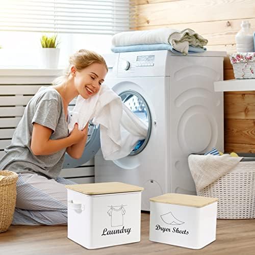 5. Ideal Decoration & Gift: This metal dryer sheet holder and laundry bin set with plain color blends in well with the surroundings, giving your laundry room a clean and fresh look. It’s definitely a good idea to give it as a housewarming gift to friends and family.