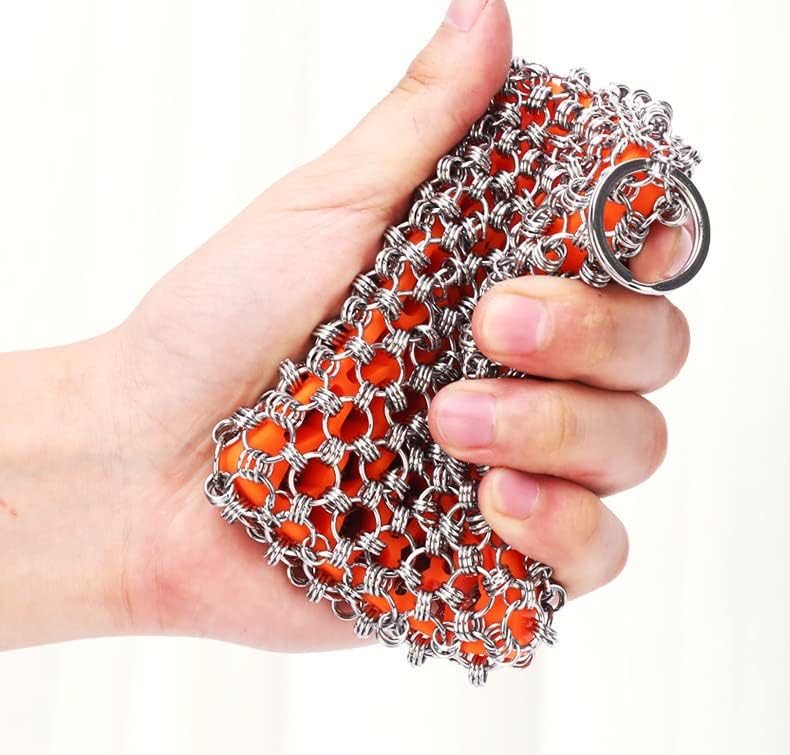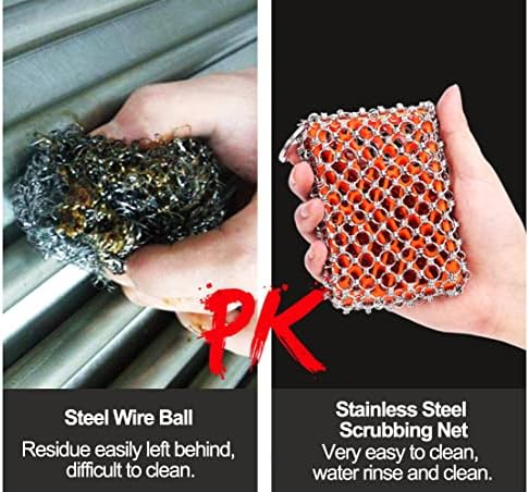 【High-quality Materials】This cast iron skillet cleaner is composed of circular 316 stainless steel ring links, which is corrosion-resistant, high-temperature resistant, has a better cleaning effect, will not harm your hands and tableware, beautiful and practical.