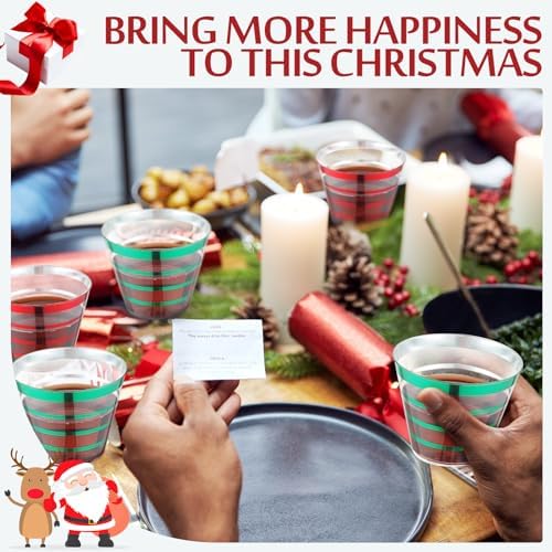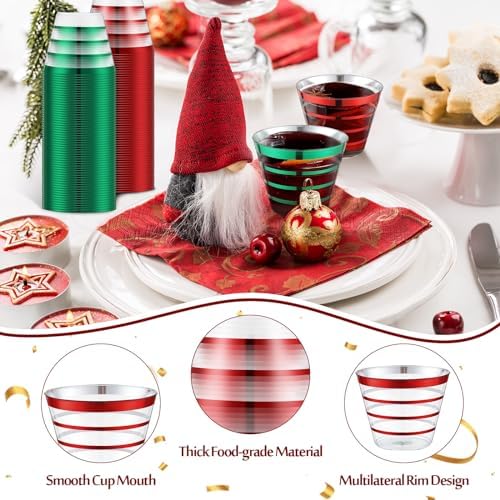 Stylish Design: elevate your event with our elegant red and green rimmed cups, featuring beautiful rings patterns that will leave guests mesmerized, these disposable cups can add a sense of sophistication to your table in party and home