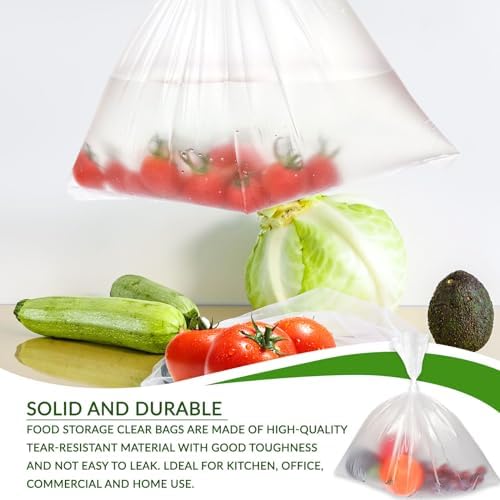 Crystal clear, thick, durable, BPA-free, and non-toxic. High quality thicker plastic makes these bags stronger than most other bags on the market. These are the perfect size for standard supermarket produce bins, but please check the size before you order. These are great for storing and carrying fruits, vegetables, sandwiches, snacks, and more. These are also great for organizing and storing items in your refrigerator, freezer, cabinets, and pantry. These bags can be sealed using the built-in zip top for freshness and safety. These are disposable, which makes clean up quick and easy. These bags are designed to make it easy for you to see what’s inside. These bags are larger than most other bags on the market. Please check the size carefully before you order.
