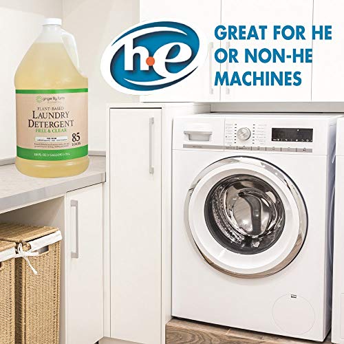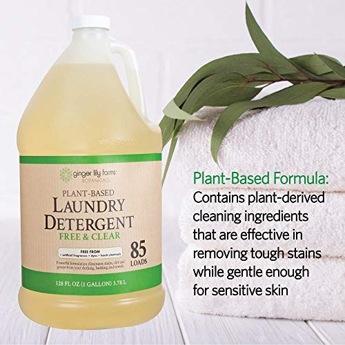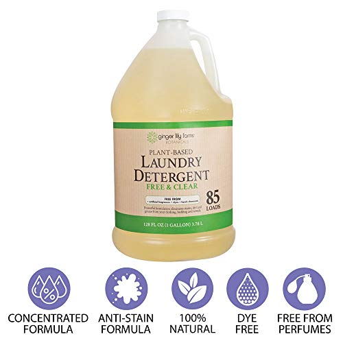 Ginger Lily Farms Botanicals Plant-Based Liquid Laundry Detergent uses ultra-concentrated, plant-derived ingredients to lift tough stains, brighten whites and guard colors. Plant-powered formula provides a deep clean without causing irritation to sensitive skin and rinses away clean. Formula works in all water temperatures with both high-efficiency (HE) and standard washing machines. Ideal for hand washing and gentle enough for delicate fabrics. Free and clear detergent is fragrance-free and made with natural ingredients that are safe for people, pets, and plants.