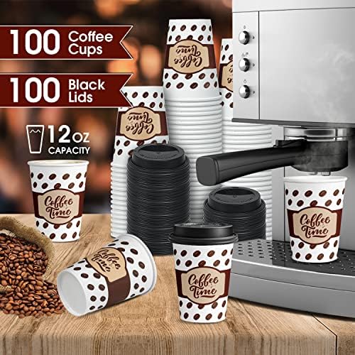 Ginkgo Coffee Cups with Lids 12 oz, 92 Pack Disposable To Go Coffee Cups for Cappuccino, Hot Beverages, Coffee, Cocoa, Chocolate – Coffee Time