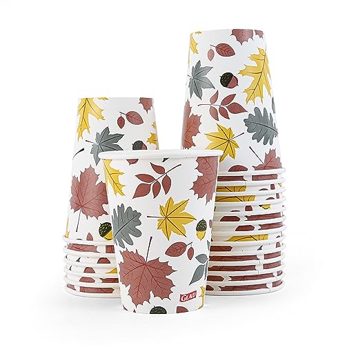 This fun Falling Foliage design features elegant fall colors with leaves. Whether you’re dressing up daily dinners, serving up a fun snack time, or planning the perfect party, we believe in bringing a little magic to every mealtime. Glad brings you strong and sturdy 12 oz soak proof disposable paper cups, making every meal or snack even more enjoyable. This is a package of 20 paper cups in a green, orange and gold Falling Foliage design. Each of these disposable paper cups in this 20-count package is conveniently disposable, while looking great on any tablescape. Great for the young and young-at-heart: adults, kids, and toddlers. These disposable paper cups work well for everyone and every occasion. They feature a fun falling leaf design in an autumnal range of colors: gold, green, and orange. Sure to add colorful design flair to any table setting. Dine better with Glad. Glad Everyday Falling Foliage cups make mealtime easy. Made from the highest quality materials, these beautiful paper cups will instantly dress up any dinner, dessert, snack, or meal at your table setting. These paper cups are disposable, making cleanup easy for everyone. You can feel good about the tabletop you use when you dine with Glad. YOUR SATISFACTION IS OUR PRIORITY: If you have any questions or feedback, please reach out to us at Brand Buzz CP. Glad® and logo are registered trademarks of The Glad Product Company and are used under license by Brand Buzz LLC. All rights reserved. Developed in the USA | Responsibly made in China ©2020.