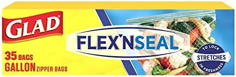 Glad FLEXN SEAL food storage bags stretch to hold more and to lock in freshness. Designed to hold 30% more* *Compared to Glad standard quart or gallon bags, these zipper bags stretch around food of any shape while maintaining a tight seal. Glad FLEXN SEAL helps keep your food fresher longer based on moisture-loss data versus no protection and stretches to prevent rips and tears. So whether you are bagging your oversized sandwich, storing fruits and veggies or marinating meats or poultry you can ensure it stays fresh and secure in the bag. Seal in the freshness with this gallon size zipper bag and take food from freezer to microwave with ease and less mess. Perfect for packing extra large sandwiches and your favorite snacks, baked goods or leftover meals, but also handy for storing herbs, spices, nuts and even travel toiletries. Glad has the right size for everything from sandwich, to quart, to gallon for food or freezer storage to keep your food garden fresh and tasting great.
