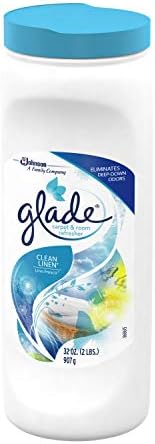 Keep your floors at their most lovable with Glade Carpet & Room Refresher. Carpet freshener eliminates deep down odors on carpets and rugs, and freshens your home with a variety of Glade fragrances to ensure you always have something soft and loving to welcome you home. The classic scent of line-dried laundry gets a modern twist of sunny citrus in Glade Clean Linen. The familiar feeling of clean comfort makes home feel even cozier.