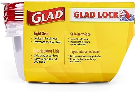 TOP-RACK DISHWASHER SAFE – GladWare food containers resist heat and withstand moisture, making them safe to use on the top rack of your dishwasher. Minimize mess and make cleanup a breeze with Glad.