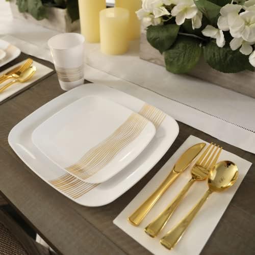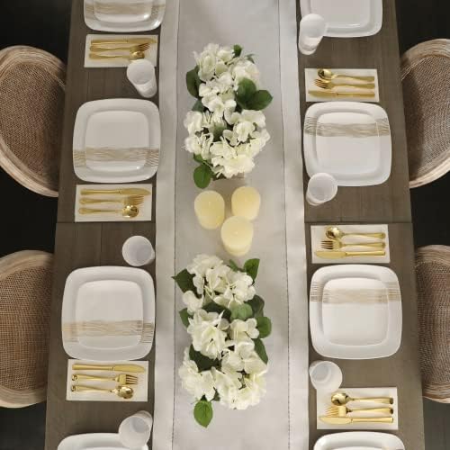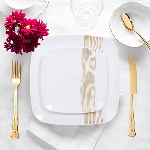 ALL OCCASION: Our fancy plastic dinnerware sets are suitable for weddings, receptions, anniversaries, birthday parties, picnics, bridal showers, holidays, family gatherings, and all other fancy dinner, our fancy disposable dinnerware will upgrade your table!