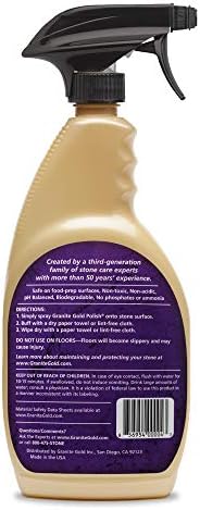 Granite Gold Polish is a granite polish that quickly and easily enhances the shine and luster on granite, marble, travertine and all other natural-stone and quartz surfaces and provides ongoing protection against water spots and fingerprints. Polish shower walls and tub surrounds to help prevent soap scum build-up, but do not use on floors, which can become slippery. Our products were created by a third-generation family of stone care experts and made in the USA, which is why we are the number one family brand of stone care products. We make it easy for you to clean and protect your natural stone surfaces including kitchen countertops, floors, and bathroom vanities. Try our Daily Cleaner, Sealer, Polish, Grout Cleaner and more; the Granite Gold collection of products is unsurpassed in expertise, passion, and quality, protecting your natural stone and quartz like no other product.