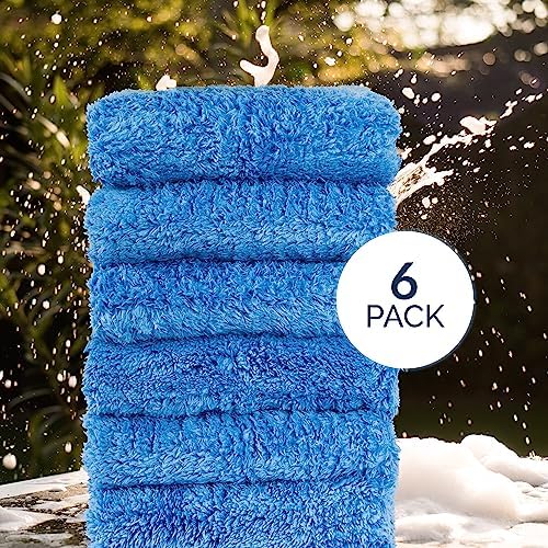 GREEN LIFESTYLE Microfiber Towels for Cars 6 Pack, Borderless Microfiber Towels Cleaning, Rags for Cleaning, Car Microfiber Towel, Drying Towels for Сars, Car Wash Towels (16″ x 16″, Blue)