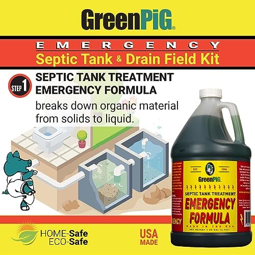 Trusted since 1996! GREEN PIG manufactures products that work! Green Pig Septic Tank Treatment Emergency Formula is specifically formulated to work quickly and efficiently on a clogged or under-performing septic tank or cesspool. Backups, noxious odors, water pooling in the yard, as well as gurgling in the pipes need immediate attention. Green Pig Septic Tank Treatment Emergency Formula is a modified blend of enzymes that break down organic waste fast in your septic tank, leach lines and leach field.