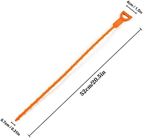 Set of 5 plastic drain Remover is 20.5 inch length, 0.31 inch width, 1.5 inch handle’s width. It’s long enough to go deep into sink pipes.