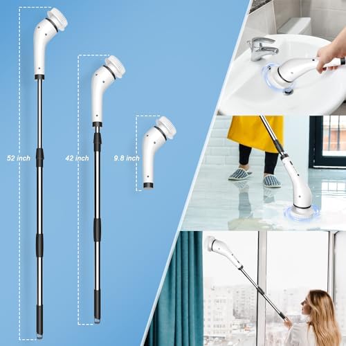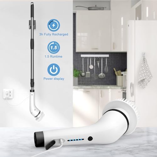 【Rechargeable & Cordless】GRUTTI shower scrubber is suitable for whole house cleaning! After 3 hours of quick charging, the cordless electric cleaning brush can work continuously for about 60-90 minutes. Lightweight, low noise and no power cord, you can move freely anywhere, freeing you from the troubles caused by traditional power cords! The ergonomic shaped handle allows you to use it for a long time without tiring.