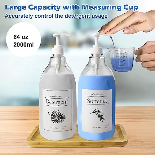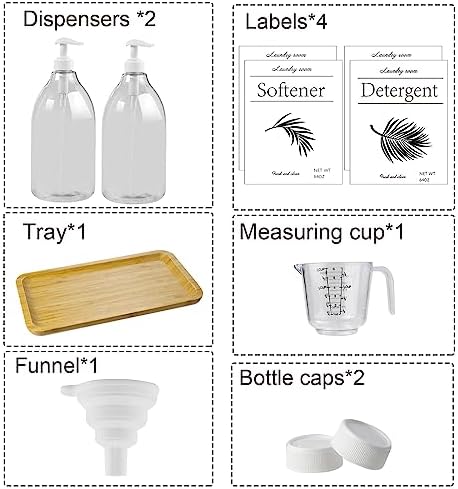 Introducing our exquisite Durable and Recyclable Laundry Soap Dispenser. Crafted with precision and care, this dispenser offers a range of remarkable features that will elevate your laundry experience to new heights. DURABLE LAUNDRY DETERGENT LIQUID DISPENSER Embracing innovation, our dispenser is meticulously crafted from high-quality PET, BPA-free material. Unlike glass or metal alternatives, our dispenser is resilient to rust and breakage, ensuring its longevity. Plus,our laundry detergent storage container bundle includes a genuine bamboo tray. THOUGHTFUL PUMP DISPENSER DESIGN Say goodbye to messy spills and wasted detergent. Our dispenser boasts a lock-down pump mechanism, expertly engineered to prevent dripping and spilling. With this thoughtful feature, you can effortlessly dispense liquid without any unnecessary waste, ensuring every drop of your cherished laundry detergent or fabric softener counts. GENEROUS CAPACITY FABRIC SOFTENER DISPENSER Designed with your convenience in mind, our detergent dispenser flaunts an impressive 2000ml capacity. Bid farewell to frequent refills and embrace the luxury of ample storage.Not only will it enhance the aesthetics of your laundry area, but it will also ensure clarity and organization. LAUNDRY ROOM ORGANIZATION JARS Embrace versatility with our laundry soap dispenser. It effortlessly adapts to your ever-changing needs. Utilize it as a liquid laundry detergent dispenser, fabric softener dispenser, hand soap dispenser, dish soap dispenser, or even more. PACKAGE INCLUDES 2 x half gallon(2l) empty bottle. 1 x bamboo tray. 2 x pump heads. 1 x set of waterproof labels. 1 x collapsible silicone funnel. Indulge in the exquisite craftsmanship of our laundry containers for organizing. Uniting durability, functionality, and aesthetic appeal, this dispenser transcends the ordinary, bringing a touch of elegance to your laundry room. Experience the epitome of convenience, practicality, and style – a testament to our unwavering commitment to excellence.