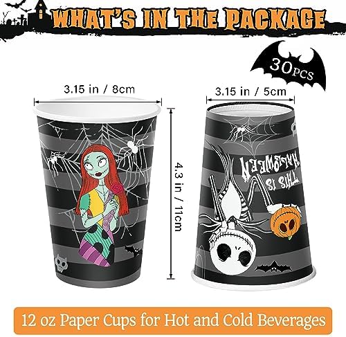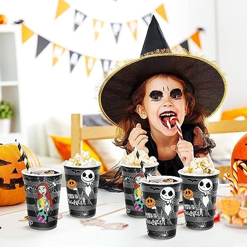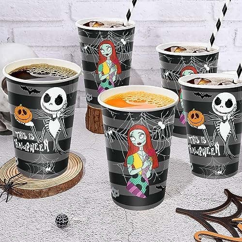 Unique Halloween Themed Design: These paper cups feature a unique Halloween-themed design, with the iconic characters patterns, along with the phrase “This is Halloween” and black and gray stripes, adding a touch of spooky and magic to your gathering.