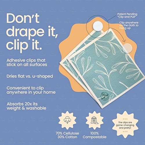 These Swedish Dish Cloths Come With Convenient Clips: When designing these 7″ x 8″ kitchen cloths for dishes, we wanted to give them a unique touch that would take them to the next level; We decided to add 3 clips per a set, so you don’t have to drape them over the sink or hang them from the oven/dishwasher handle