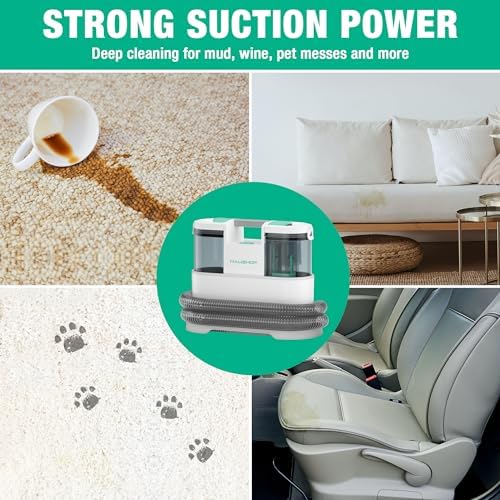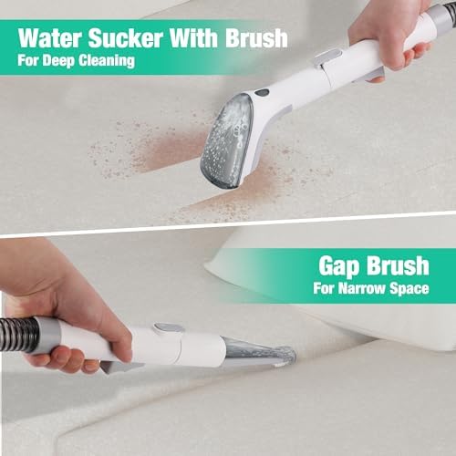 Long Reach & Versatile Tools: With the 10 FT power cord and 5.4 FT hose, the carpet spot cleaner can easily reach faraway spots and stains on the carpet, stairs, upholstery, and any other hard-to-reach areas. Flexible hose provides a more efficient water system and handles leaks. The water sucker with a brush for deep cleaning, the extra gap brush for tackling stains in narrow spaces, and even cloth shoes.