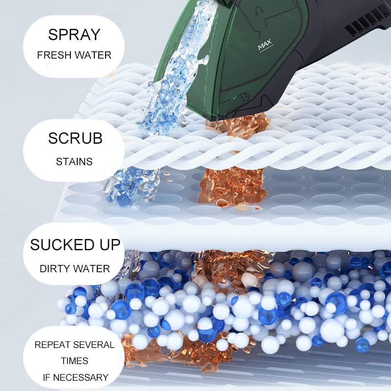 Multi-purpose cleaner owned superior suction (8000Pa), scrubbing action and professional cleaning solution to deep clean the stubborn pet stains, embedded dirt and so on. 150 ml professional carpet cleaner included. Do not use any high-foaming cleaners as an excessive amount of foam impairs the functioning of the device.