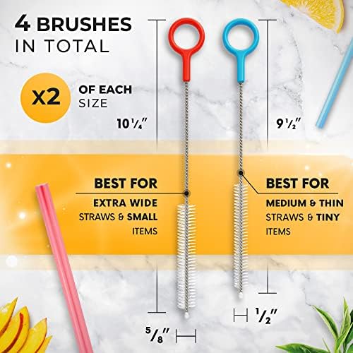 MULTI-PURPOSE – Many different uses apart from reusable straw cleaner brush(plastic, metal, silicone, bamboo). Other uses include cleaning small bottles, food processor and various kitchen appliances parts, test tubes, funnel necks, small plumbing pipes and other hard to access corners, precision tools, tea pot or coffee pots, sippy cup medicine dispenser, perculator, cpap tubes, glass pipes. Can also be used for various tumblers like Yeti, Tervis, Rtic, Bubba, Ozark, Klean Kanteen.