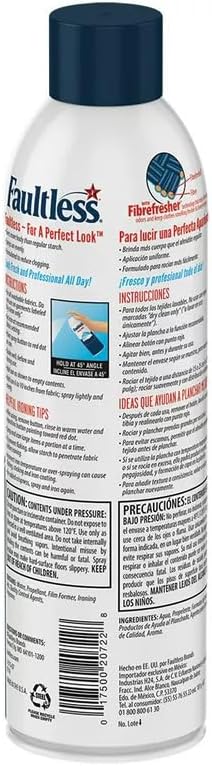 Spray Starch 20 oz. Can: Conveniently packaged in a 20 oz. can for easy application and storage.