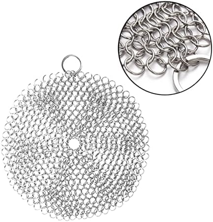 Stainless steel scrubber– specifically designed chain mail allows safe of cast iron pans. pot scrubber