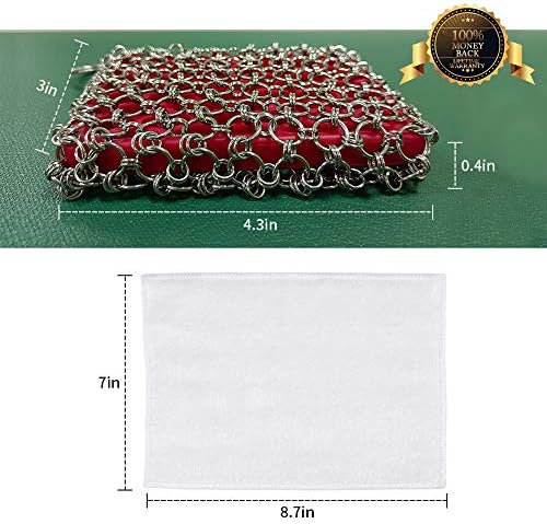 【Large Size Cast iron scrubber】TWICE LARGER than mashroom style skillet cleaner scrubber help improve the cast iron cleaning efficiency and save your time. Herda silicone chainmail scrubber Linked with 3mm small fine chainmail ring, Leave the dirt nowhere to hide.