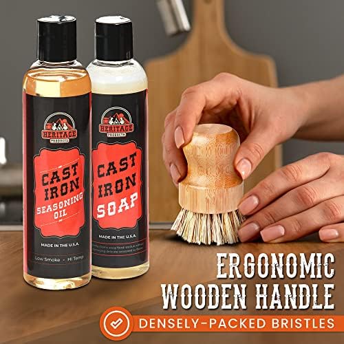 3-PIECE SET includes our plant-based cast iron oil, skillet soap and cast iron scrub brush with gentle nylon bristles. Compatible with Blackstone griddles, they clean cookware and deter rust bloom.