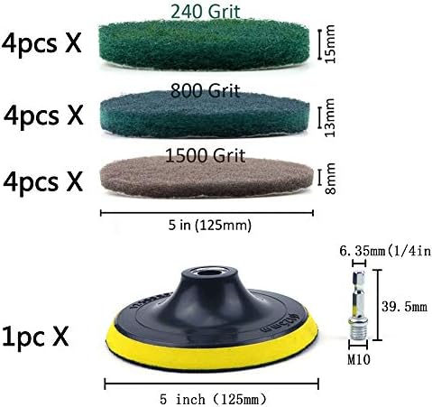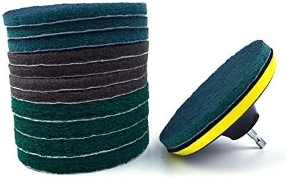 Package Include: (Drill Not Include)12 PCS x Industrial Scouring Pad+1 PC x Backing Pad with 6.35mm Shank