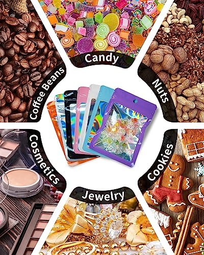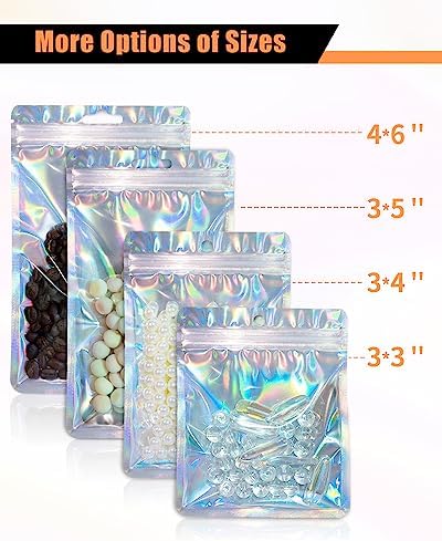 【Wide Application】These reusable holographic bags are suitable for storing various items, such as candy, sugar, rice, nuts, dried fruits, flowers, snacks, party gifts, etc. It is also an ideal choice for small businesses to package small items such as earrings jewelry, lip gloss, cosmetics, electronic accessories, etc. It can also be used as a beautiful decorative resealable bag to share with your friends and family.
