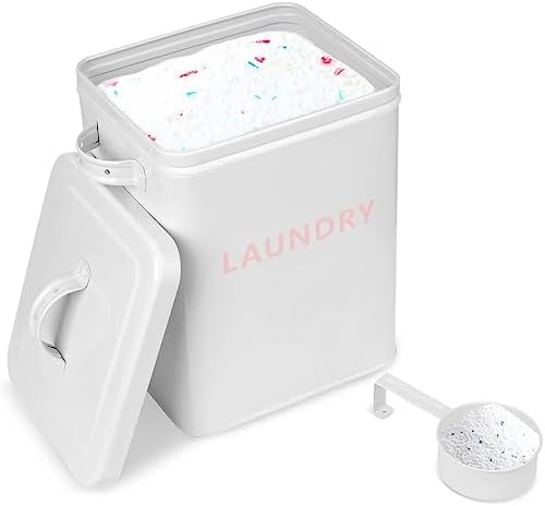 【Useful Metal Serving Scoop】It comes with a removable lid and a handy metal scoop, making it easier for you to transfer the detergent powder to your washing machine. Meanwhile, this scoop has a hooked top so you can hang it over the handles of the container. More convenient to use!