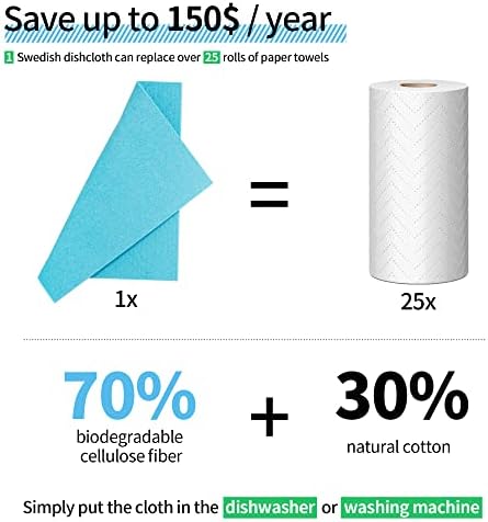【Fast Drying & Odor Free】Comprised of 70% cellulose and 30% cotton, the dishcloths air-dry much more quickly than stinky sponges. Because of this, germs and bacteria (and their accompanying odors) don’t have time to grow on them. If these dish rags do happen to start smelling gross, simply toss them in the dishwasher or washing machine and they’ll be good as new after one cycle.