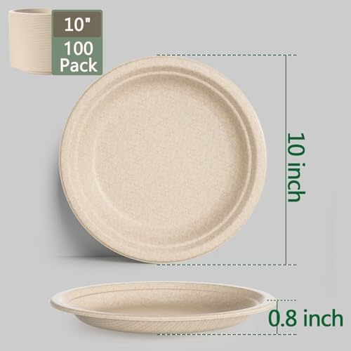 🍽️【10 Inch Heavy Duty Disposable Plates】Homestockplus heavy-duty paper plates are made of high thickness without plastic lining. Their design has excellent strength, cutting resistance, and leak resistance, which will not break or crack even under full plate pressure.