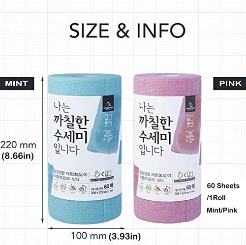 HOMETNER Dish Scouring pad, Daily disposable scrubber dish towel, Multipurpose for dishwashing, house cleaning and camping, PINK (60 Sheets/Roll)