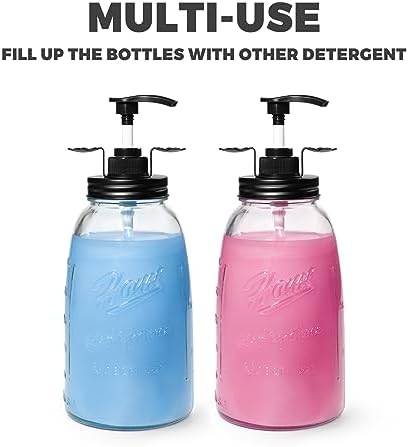 Easy to Refill: The laundry detergent dispenser glass jar has a large capacity of 50.25fl oz (3l), which means that one refill will last longer! Also, refilling the bottle is hassle-free, as the glass jar has a wide mouth that prevents any accidental spills.