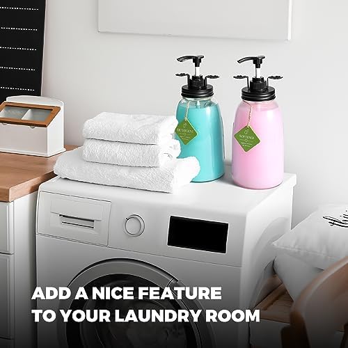 Premium Glass Mason Jar Style: This liquid dispenser for laundry room is made of premium glass with lead-free, laundry glass jars have the characteristics of highly visible contents, durability, and thickness are duly guaranteed. Come with wooden labels”DETERGENT”and”SOFTENER”(Liquid Not Included) to hang over the jar will add new farmhouse style to your laundry room.