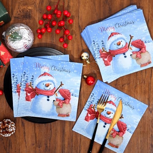 CHRISTMAS DECORATIONS: The disposable Christmas paper napkins are designed with watercolor snowman. You need the unique Christmas paper napkins to decorate your home and party. The square Christmas napkins are perfect as Christmas decorations.
