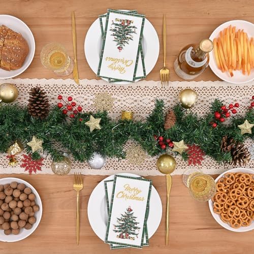 Homlouue 100 Pcs Christmas Napkins, 3 Ply Christmas Paper Napkins, Merry Chrismas Dinner Napkins Disposable, New Years Napkins, Christmas Napkins for Decoupage Party Decorations, 4.33″ X 7.87″