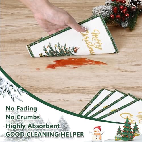 GOOD CLEANING HELPER: Our 3 ply Christmas dinner disposable napkins are both soft and highly absorbent. Say goodbye to spills and stains, as our napkins effortlessly soak up any mess, keeping your table clean and presentable.