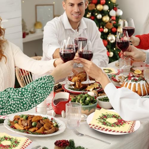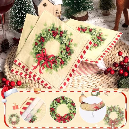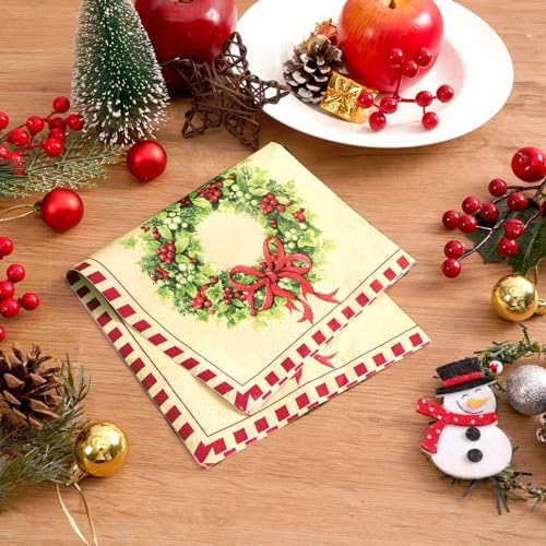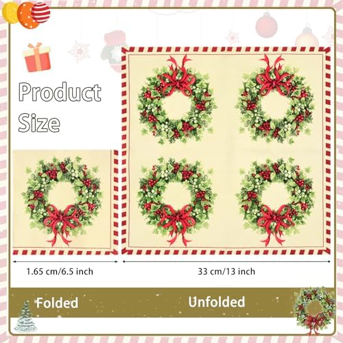 ELEGANT DESIGN: Our Christmas dinner napkins features with berry wreath and bowknot. The simple and elegant design of the napkin will not only match any plate, but will also add exquisite to the Christmas table.