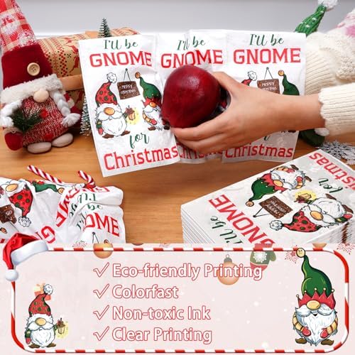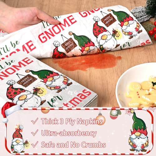 Homlouue 100 PCS Christmas Paper Napkins, 3-Ply Cartoon Gnome Napkins for Christmas Holiday Party, Christmas Napkins Disposable for Bathroom Kitchen, Christmas Decorative Napkins for Xmas Dinner Party