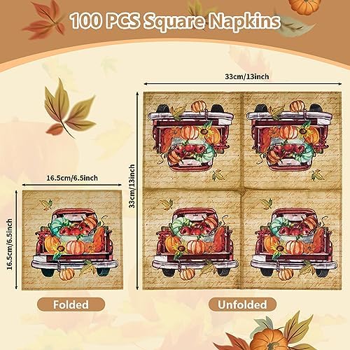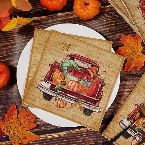 GREAT PARTY NAPKINS: Pumpkin truck pattern fall paper napkins will be great paper napkins decorative in autumn. The fall napkins disposable will be a great party decor for fall party, Thanksgiving, harvest party, Thanksgiving family party, fall wedding party, fall wedding party.