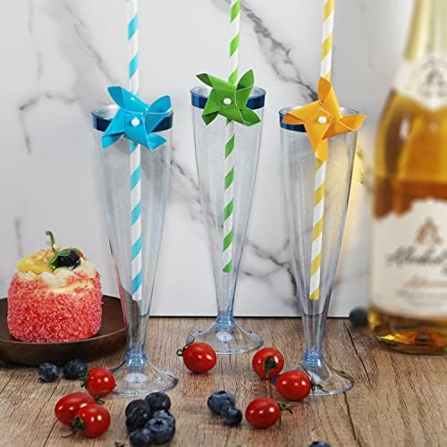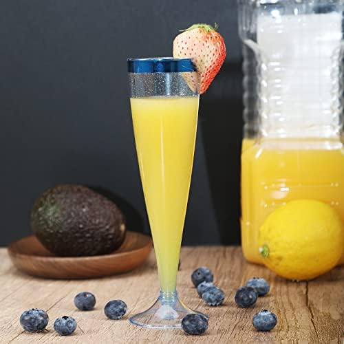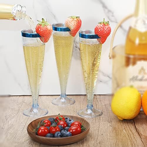 Homy Feel 5 OZ Blue Glitter Blue Rim Plastic Champagne Flutes 30 Pack, Disposable Wine Glasses for Party,Plastic Champagne Glasses Champagne Punch,Mimosa Bar Wedding Cups