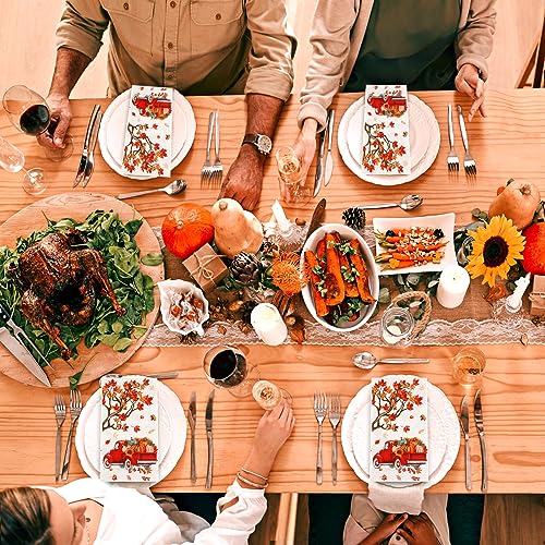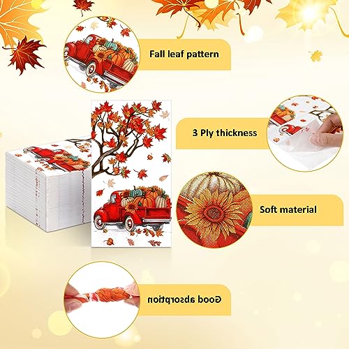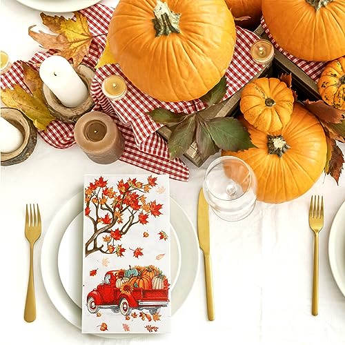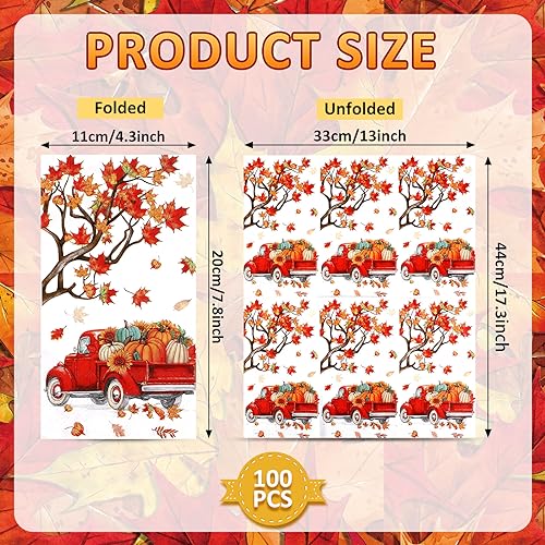 Unique Autumn Design: these autumn paper napkins are designed with various maple elegant leaves with different colors, red pickup trucks full of pumpkins, symbolizing the autumn harvest, your party and dining table will be full of autumn favors, which will pull you to the gold and yellow world, creating a strong autumn feeling