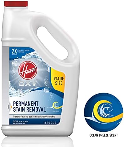Hoover Oxy Carpet Cleaning Solution is a fast-acting, stain fighting formula that not only attacks, but also breaks down both old and new stains for easy removal. This solution uses oxy technology to neutralize pungent odors and leave your carpets smelling fresh and clean with an ocean breeze scent. Win against life’s toughest stains when you experience the exceptional punching power of Hoover Oxy Carpet Cleaning Formula.