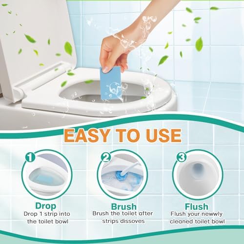 Easy to Use: With Our toilet cleaners, a clean toilet can be regained with 3 easy steps. No plastic bottles or messy liquids are required. 1. Just drop one or two sheets into the toilet 2. let it dissolve for 30 seconds,3. Brush the toilet, and flush. (Tip: Before brushing the toilet, water the toilet cleaner sheets with the shower to make abundant foam.)
