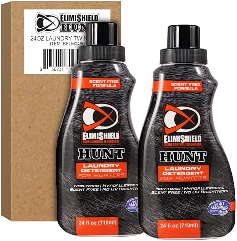 Elimishield HUNT laundry detergent for hunters is an advanced, highly-concentrated formulation that is specifically designed to remove blood, Grease, grime and other stains encountered in tough hunting conditions, but this no scent detergent is gentle on your favorite camouflage patterns! scent free, phosphate free, he compatible, no UV or optical Brighteners. This formula is powerful so use as directed! more is not better in this case