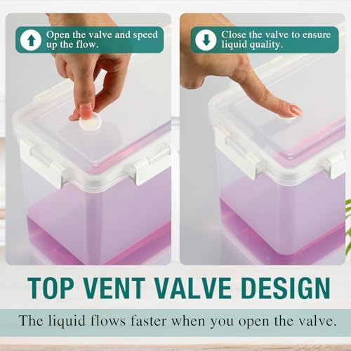 Proper Capacity and Warm Note: the capacity of our detergent dispenser for laundry room is 67.6 oz, proper capacity for you to hold many kinds of liquids; Note: if you feel that the liquid flow rate is slow, you can open the valve on the lid to make the liquid flow rate faster